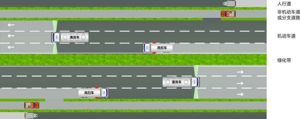 (二)机械化清扫作业模式(主道+非机动车道+人行道)