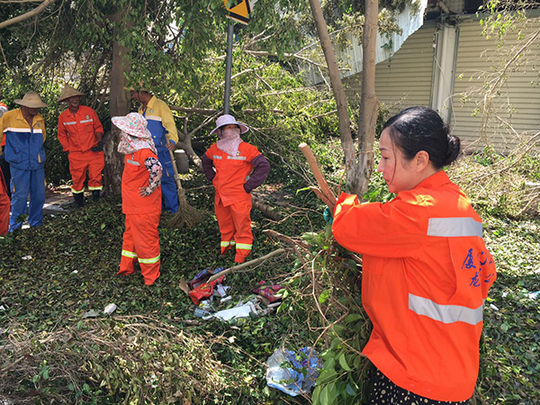 今年第14号台风“莫兰蒂”于15日3点05分在厦门翔安沿海登陆,最大风力达17级,是今年以来全球最强台风,也是1949年以来登陆闽南的最强台风。狂风暴雨重创厦门,60多万株树木倒伏,美丽的鹭岛一夜间满目疮痍,短时间内全市环境卫生基本处于瘫痪无序状态。在市民们如火如荼救灾重建“美丽厦门”时,一支浩荡的救援队伍吸引了记者的眼球,灾后清晨,一百多号人走上被台风席卷后的重灾区,扛木砍枝,清扫路障,清理着这座被狂风暴雨席卷后一片狼藉的城区。他们中,有的是的当地环卫工,有的是行政人员,年龄最大的超过60岁。得知灾情,分别到达集美和思明,没来得及吃午饭,当即拿着铲子、锄头、扫把、尼龙口袋……开始清理路边树枝和垃圾,从早到晚,没有停下清理和救援的脚步。