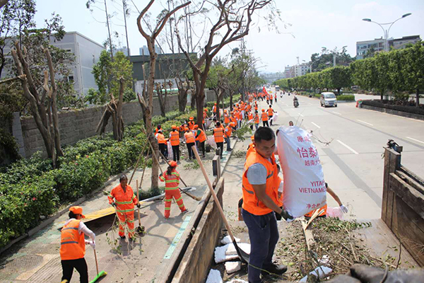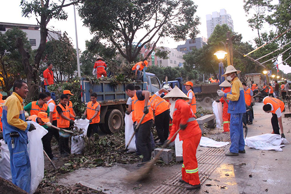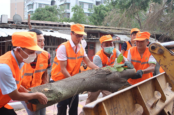 得知灾情之际,龙岩环卫处、龙马环卫共同组织成立了厦门灾区环卫救援队,上百名龙马环卫员工踊跃争当志愿者,并于第一时间派出第一批救援队伍,他们带上铁铲、油锯、锄头等清障工具,前往灾区协助厦门环卫主管部门开展工作,目前仍奋战在救灾的一线。