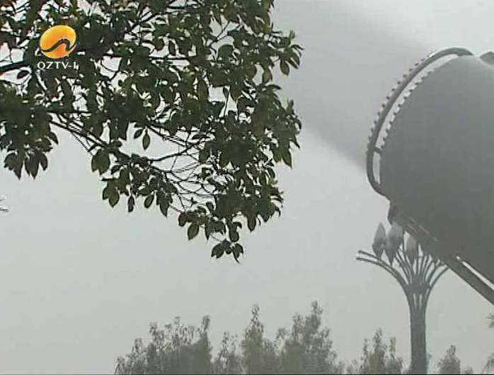 “这个高雾炮是可以把水打成非常细小的水分子颗粒 那它呈雾状,就是说我们雾霾主要是PM2.5 一些小颗粒 那它就是可以把那些小颗粒吸附包裹 然后让它降尘 起到一种除雾霾的作用”