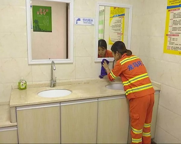 “厕所每有一个人出来,我们就进去搞一下卫生,把它搞得很干净。”