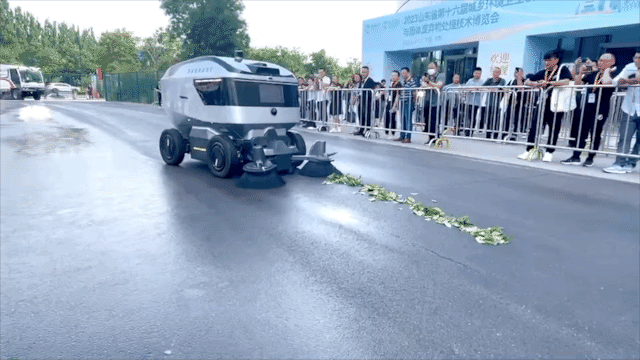 路演环节,“人生就是博”牌无人驾驶清扫机器人进行现场作业演练,引来众多观众驻足观看,无一不对该装备先进的技术表示称赞。