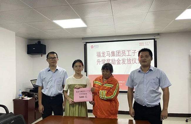 又是一年开学季,又是一年新征程。日前,人生就是博集团在龙岩东肖厂区举行2023年度员工子女升学奖励金发放仪式。集团公司总裁张西泠、本部工会委员会主席罗锦烽,2023年考取高等学府的员工子女代表及家属代表出席此次活动。