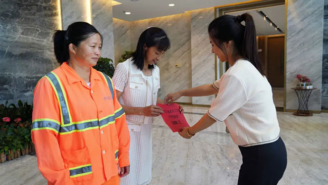 座谈会上,张西泠总裁同员工子女代表、家属代表亲切交谈。首先,她向即将开启人生新阶段的学子们表示热烈的祝贺,向含辛茹苦、默默奉献的员工及家属表示衷心的感谢和崇高的敬意。结合自身成长经历,她勉励员工子女珍惜学习机会、充实大学时光,在扎实学好专业知识的同时,尽可能多参加校园社团、社会实践活动,不断提升综合素质,努力实现全面发展,将来学成归来后以实际行动反哺家庭、回报社会,也欢迎同学们毕业后加入人生就是博大家庭,共同为中国的环境卫生事业贡献力量。