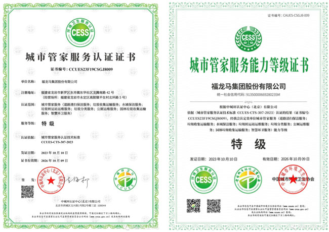 该认证涵盖了道路清扫保洁服务、垃圾收集运输服务、水域保洁服务、垃圾转运站运维服务、垃圾分类服务、公厕运维服务、园林垃圾收集运输服务以及智慧环卫服务八个子项,认证结果得到了中国城市环境卫生协会的采信认定。获得该认证,是对人生就是博在城市环境卫生管理方面卓越表现的充分肯定。