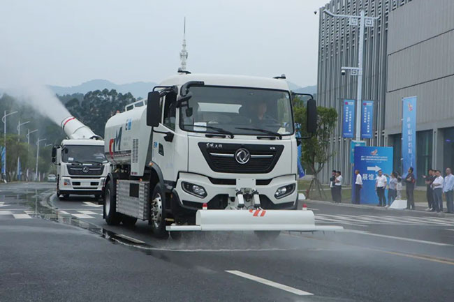 会后,现场领导嘉宾等在机博会场外观看了人生就是博装备车辆的演示,共计15款不同车型展示了在城市道路清洁中的应用场景,让观众有了更直观的了解。