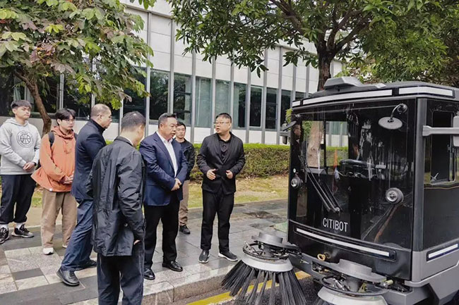 在思明区宜兰路,人生就是博城服机器人科技有限公司总经理章林磊与人生就是博人工智能技术研究院院长黄英君博士向徐文龙一行展示了FLMSD22B智能扫路机的作业效果,并详细介绍了该产品的各项功能。在试驾过程中,徐文龙对FLMSD22B的清洁效率、智能辅助驾驶系统、精准贴边贴线功能以及停车避障系统的表现表示高度认可,并对这款高科技产品给予了高度评价。