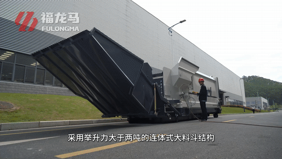 采用举升力大于2t的连体式大料斗结构,料斗内部纵深3m,内宽2.34m,容积达4.5m³,可实现中小型垃圾收集车一次完全卸料,避免多次卸料造成来料车拥堵及卸料二次污染等问题。