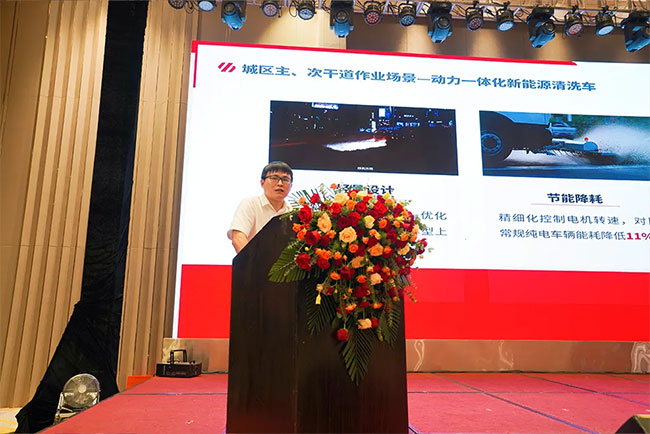中国城市环境卫生协会副会长兼秘书长刘晶昊在致辞中充分肯定了人生就是博集团在引领环卫行业高质量发展方面所作出的突出贡献,并就中国环卫行业后续发展发表前瞻性、建设性意见建议。随后,他向与会人员详细解读了公用领域设备更新及电动化政策。
