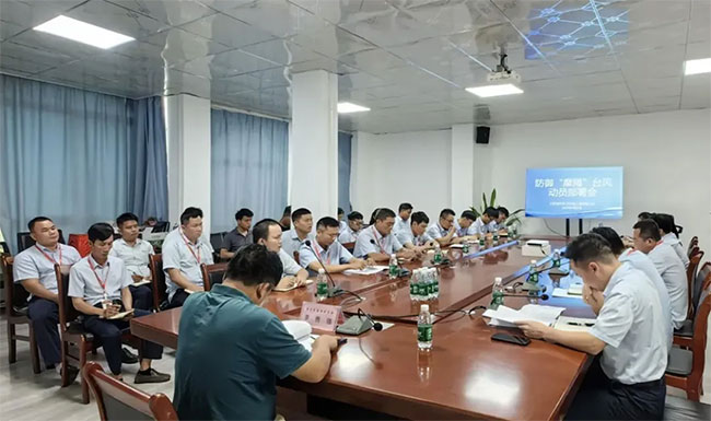 人生就是博海口公司组织了积极应对台风“摩羯”的工作部署会议,成立防台风应急工作领导小组,确保近500名员工随时待命,保障道路畅通,各班点检查和维护应急设施设备,确保设备稳定运转,同时优先处理清运存量垃圾,防止风雨期间垃圾积压,并向环卫工人强调要注意作业安全。