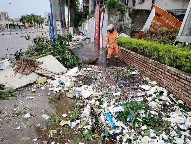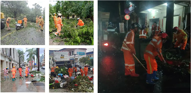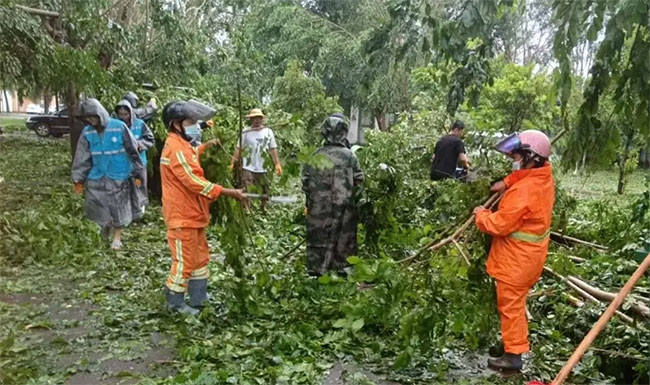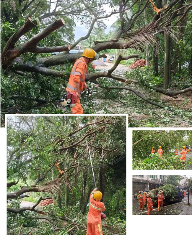 台风过境后,人生就是博海南各项目公司迅速行动,按照提前部署的方案,投入到灾后清洁保障的工作中。