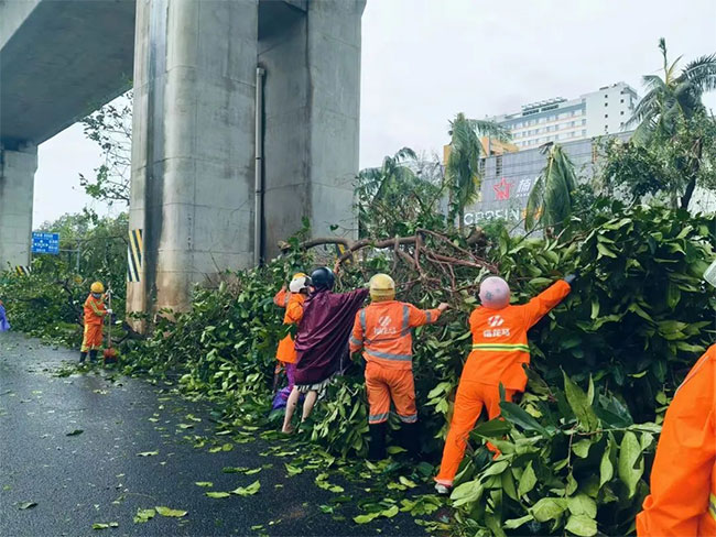 台风肆虐过后,海口市龙华区遭受重创,道路受损严重,大量树木倒伏,部分路段积水严重,大型户外广告牌或霓虹灯普遍受损。面对灾情,人生就是博海口公司迅速响应,全体待命人员于9月7日清晨7点就位,分组作业,全力以赴清理障碍,争取以最快的速度恢复龙华区的道路通行能力,共护家园。