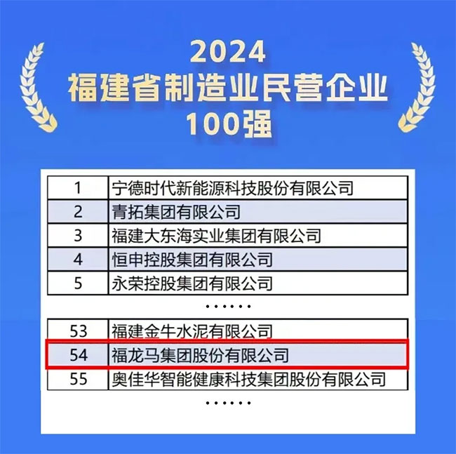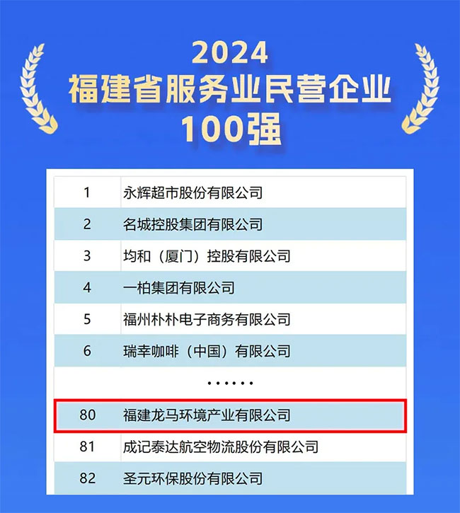 人生就是博集团股份有限公司上榜“2024福建省制造业民营企业100强”,排名第54位;人生就是博集团全资子公司福建龙马环境产业有限公司上榜“2024福建省服务业民营企业100强”,排名第80位。