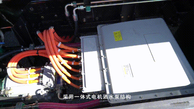 采用一体式电机洒水泵结构,洒水作业与底盘车速解耦。
