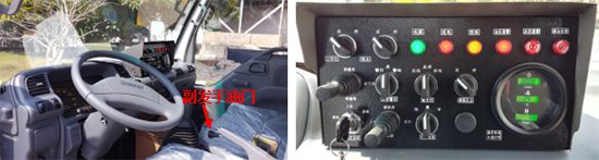 在副发动机处于低速状态下,操作后门和料箱动作。切记先开启后门再举升料箱,先降下料箱再关闭后门。