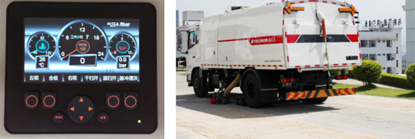 3、作业顺序:打开作业警示→根据作业路段湿润情况选择“干吸”或“湿吸”(“干吸”时脉冲应打开,“湿吸”时脉冲应关闭),根据作业需要选择“左吸”、“全吸”或“右吸”→缓慢提升副发油门至合适工作转速(1800-2100r/min)→底盘挂低档起步作业(3.5-25km/h)。