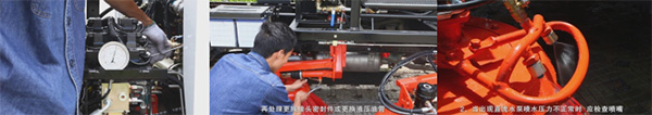 4)检查管路是否出现漏油、漏水现象,必要时加紧管路接头或更换密封圈、管路;