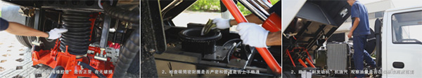 1)每日作业完成后,应清洗整车内外部,特别是垃圾箱过滤网、吸筒、后门胶条、门框等易堵塞部位应冲洗干净,对于电气部分等怕水部件请勿用水冲洗;
